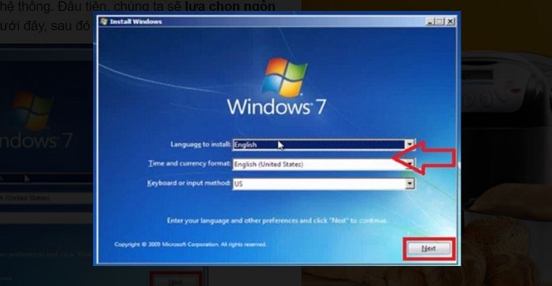 Hoàn thành bước 3, bạn sẽ được đưa tới giao diện mới. Tại đây, bạn hãy lựa chọn ngôn ngữ và định dạng bàn phím phù hợp sao cho bạn dễ dàng thao tác nhất. Sau đó hãy chọn Next để chuyển đến thao tác tiếp theo.