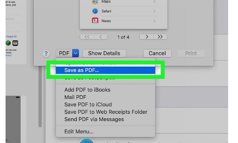 Ở phía dưới hộp thoại Print mới hiển thị hãy nhấn chọn mục PDF > Save as PDF…