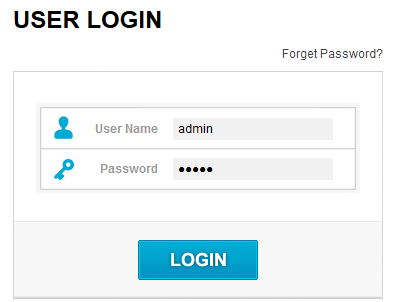 Nhập User Name và Password được yêu cầu, mặc định cả 2 là admin được viết thường. Nhấn LOGIN.