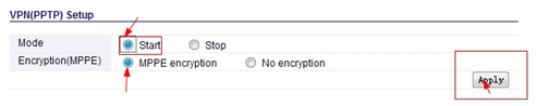 Tick chọn Start để kết nối máy chủ VPN. Sau đó nhấn nút Apply.