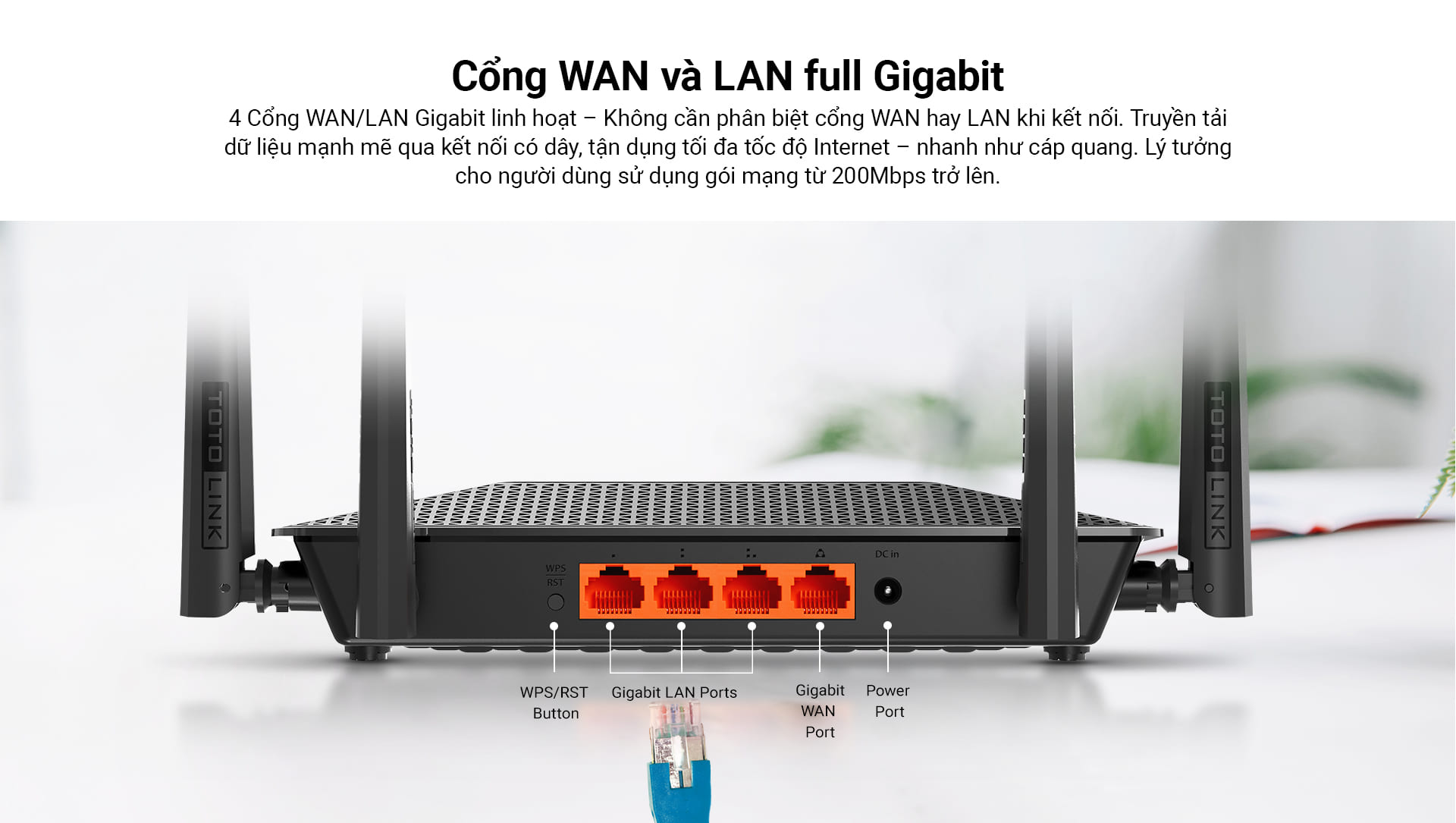 - Cổng Gigabit WAN/LAN hỗ trợ truyền tải dữ liệu tốc độ cao.