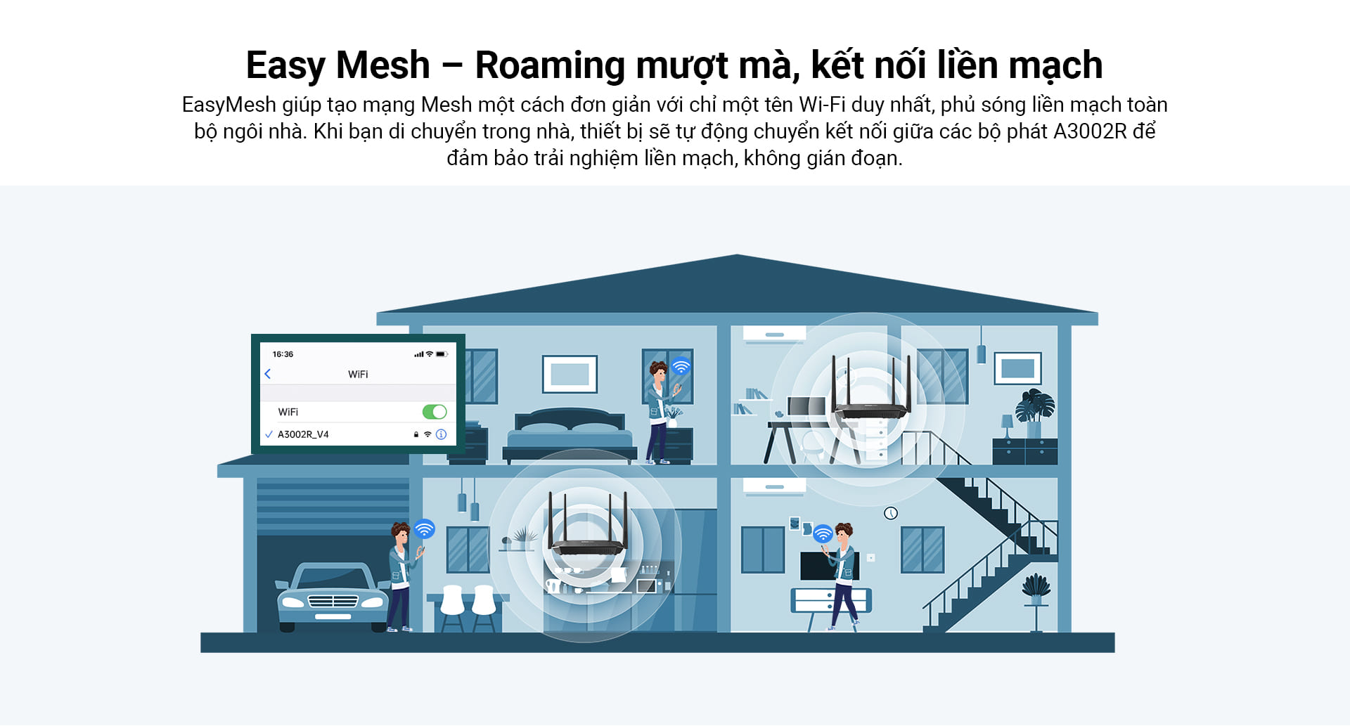 - Easy Mesh mở rộng vùng phủ sóng, cài đặt dễ dàng qua ứng dụng TOTOLINK Router App.