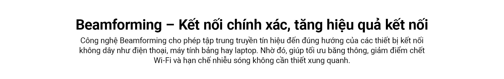 - Beamforming tăng cường tín hiệu Wi-Fi, giảm điểm chết và nhiễu sóng.
